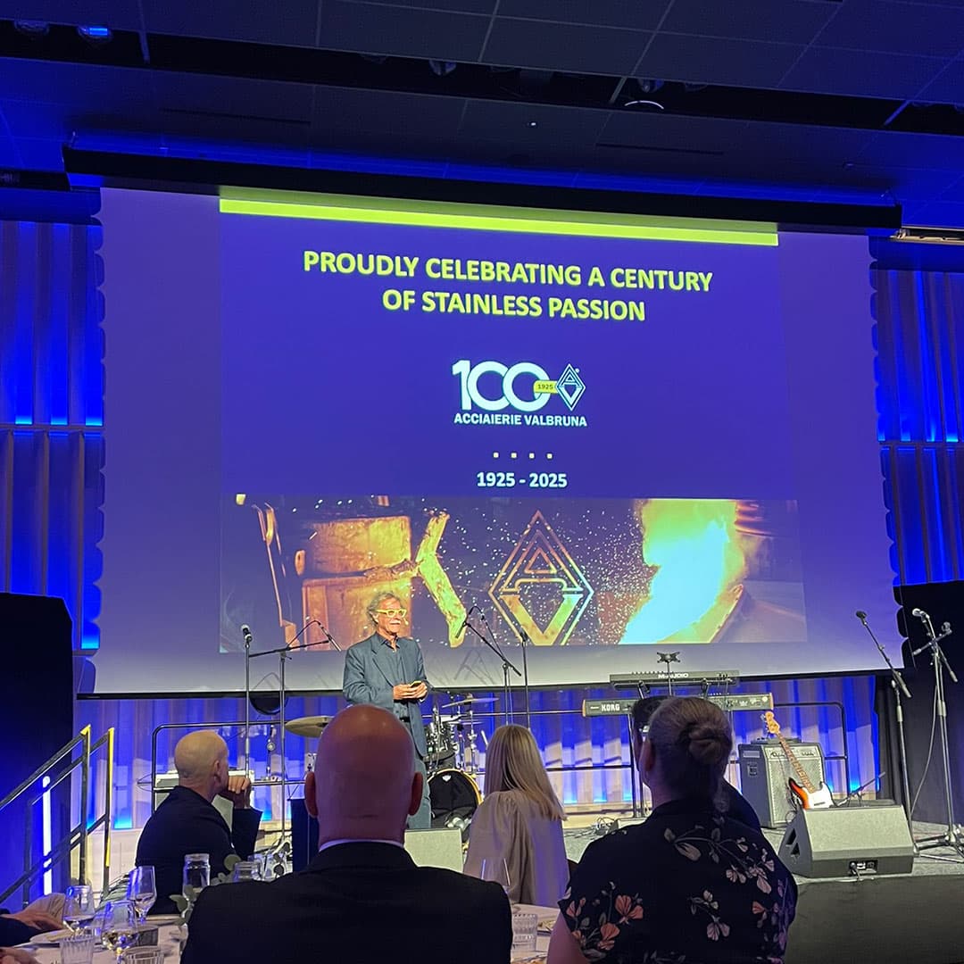 Under vores fejring i Gøteborg delte Massimo Amanduni, administrerende direktør for Acciaierie Valbruna, stolt historien om Et århundrede med rustfri passion, til ære for vores rejse og de mennesker, der har gjort det muligt.